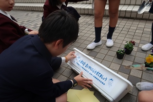 行事 386.人権の花植栽(5年生) 2019年11月25日 2019年11月26日 11月25日(月)に、5年生が人権の花を植えました。 人権擁護委員の赤土様と大西様にお越しいただき、5年生全員で人権の花としてパンジーを植え付けました。 児童たちは協力しながら丁寧に作業していました。この植栽は児童たちにとって、人を思いやる心について考える良い機会になりました。翌日には、自ら水をやりに行く児童の姿が見られました。 人権擁護委員赤土様からご挨拶 人権擁護啓発のラベルを貼り付け パンジーの植栽 児童代表よりお礼の言葉