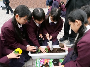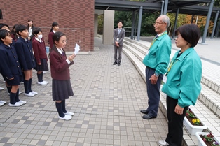 11月25日(月)に、5年生が人権の花を植えました。 人権擁護委員の赤土様と大西様にお越しいただき、5年生全員で人権の花としてパンジーを植え付けました。 児童たちは協力しながら丁寧に作業していました。この植栽は児童たちにとって、人を思いやる心について考える良い機会になりました。翌日には、自ら水をやりに行く児童の姿が見られました。 人権擁護委員赤土様からご挨拶 人権擁護啓発のラベルを貼り付け パンジーの植栽 児童代表よりお礼の言葉
