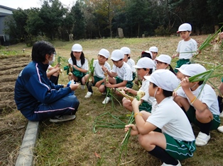 12月11日(水)に3年生がタマネギの収穫をしました。