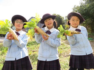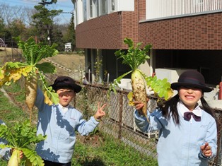 9月頃に種を植えてからしっかり水をやり、大きなダイコンを収穫することができました。児童たちは、自分で育てたダイコンを家で食べるのを楽しみに持って帰りました。