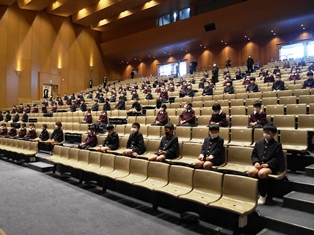 1学期の年度初め集会は、講堂内の座席の間隔を空けるなど、新型コロナウイルス対策を十分したうえで実施しました。
