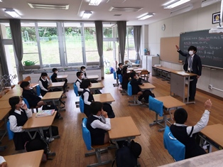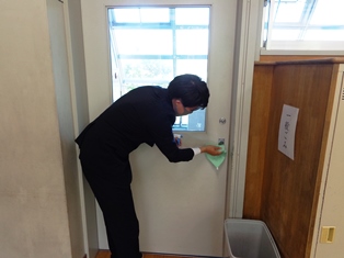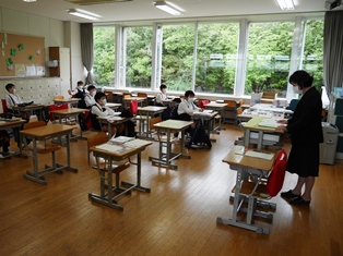 ホームルームでは、児童の健康状態の確認や、学習状況の確認、新型コロナウイルス対策について話をしました。児童が下校した後、教員で各所を消毒しました。