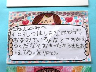 1年生は、「動画を見て、楽しかった。」「2年生が紹介してくれたところに、早く遊びに行きたい。」など、様々な感想を述べていました。後日、1年生は2年生にお礼の言葉を書きました。