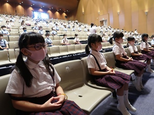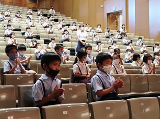 7月31日(金)に感謝祭と児童会役員任命式、永年勤続職員表彰式を実施しました。