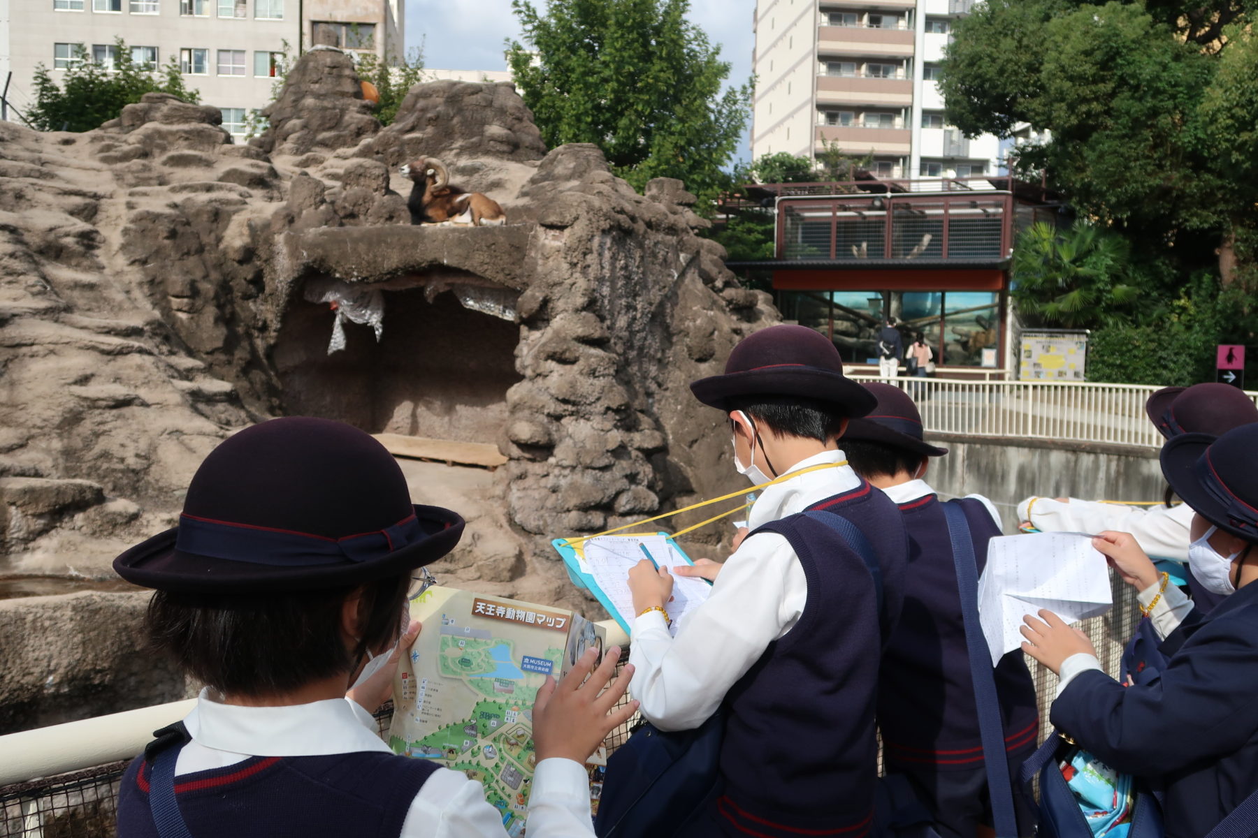 事前にグループごとに道順の計画を立て、先生が用意した天王寺動物園クイズに挑戦しながら、園内をすみずみまで歩きました。