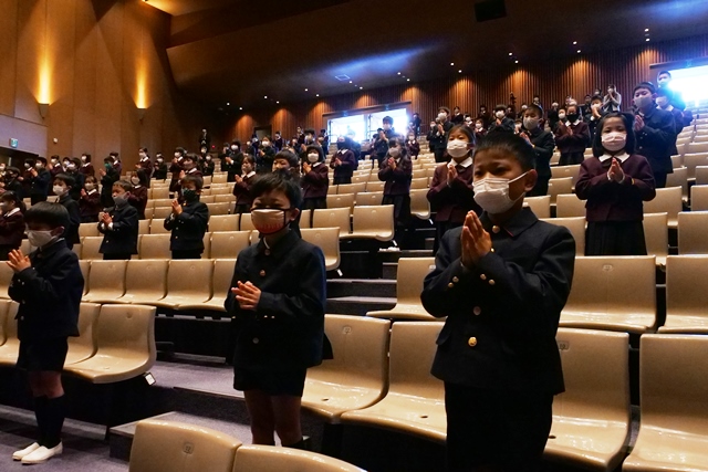 行事 439.1学期始業式 2021年4月7日 4月7日(水)に1学期始業式を行いました。 まず、山本校長先生から次のようなお話がありました。 「みなさん、進級おめでとうございます。皆さんには3つのことをお願いしたいと思います。1つ目は、爽やかな挨拶をすること。2つ目は、相互礼拝相互扶助、お互いを褒め合い、助け合うこと。3つ目は、1人1人がなりたい自分を目指してがん...