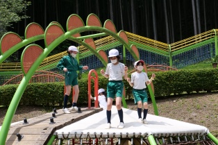 行事 444.春の遠足(4年生) 2021年5月14日 2021年5月21日 5月14日(金)に4年生が春の遠足に行きました。 平成榛原子供のもり公園まで行き、午前はオリエンテーリング、午後は恐竜の国にある遊具で体を動かしました。坂道をたくさん通るオリエンテーリングで、児童たちは汗をたくさんかきながらチェックポイントを回っていました。恐竜の国では、ターザンロープやローラー滑り台などで元気いっぱいに遊んでいました。 オリエンテーリング ターザンロープ ローラー滑り台 トランポリン