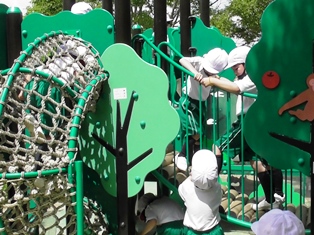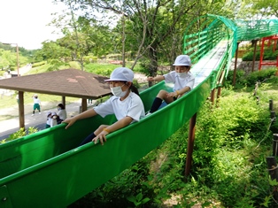 行事 447.春の遠足(1年生) 2021年5月14日 2021年5月21日 5月14日(金)に1年生が、春の遠足で竹取公園に行きました。 学びの森の長いすべり台やアスレチックなど、たくさんの遊具で遊びました。また、みんなの広場では、サッカーをしたり、生活の授業で作った風車や竹とんぼで遊んだりと、1日楽しく過ごしました。 児童たちは、「ローラーすべり台がとても長くておもしろかったよ。」「友達と鬼ごっこをして楽しかった。」など、様々な感想を言っていました。 走ると風車が回ります みんなの広場でサッカー 花とせせらぎの広場の遊具 とても長いローラーすべり台