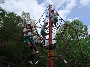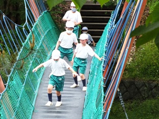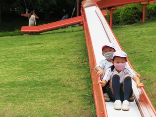 宇陀市にある平成榛原子供のもり公園に行き、午前は恐竜の国にある遊具で遊びました。ローラーの滑り台は児童たちの中で一番人気でした。
