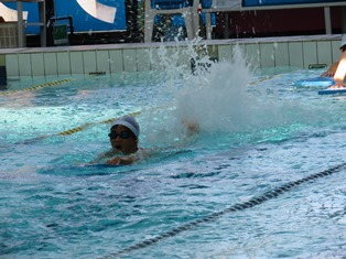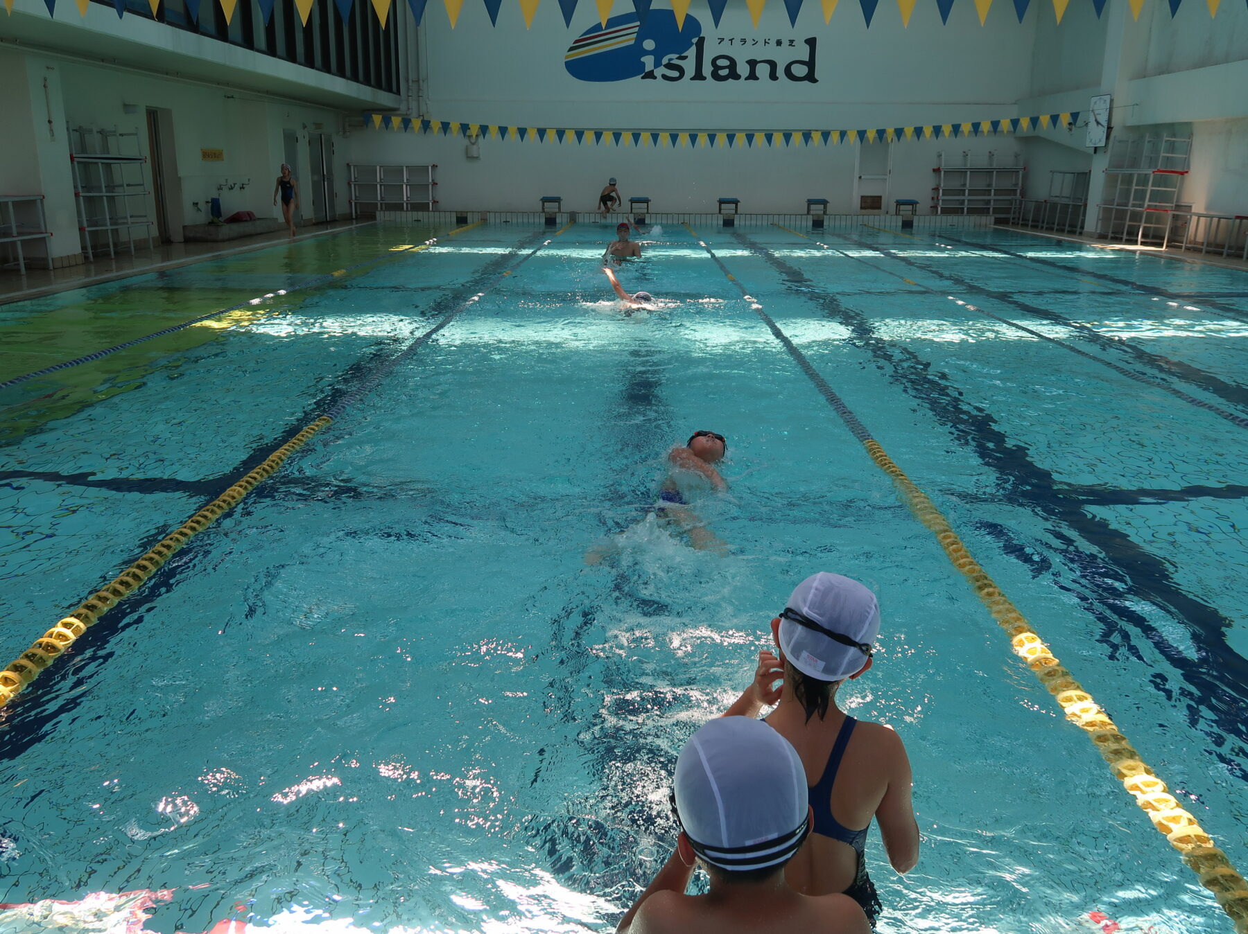 「水の中で足をばたばたさせて気持ちがよかった。」「クロールですいすい泳げて楽しかった。」と児童たちは笑顔で感想を述べていました。