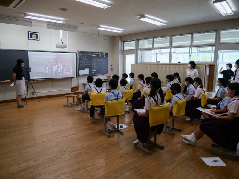 そこで、今回、6年生の教室とレッドランズの高校2年日本語クラスをオンラインでつなぎ、交流することにしました。互いに自己紹介や学校生活に関する質問など、本校児童は英語でレッドランズの高校生は日本語で伝えるという交流会は和気あいあいとした雰囲気になりました。児童たちは自分の英語が相手に理解してもらえると、とてもうれしそうにしていました。