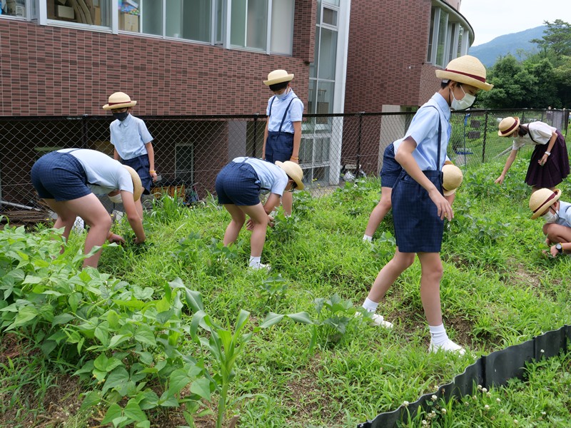 里山 457.インゲンマメの収穫(5・6年生) 2021年6月22日 6月22日(火)に、5・6年生がインゲンマメを収穫しました。 インゲンマメは、理科の授業で植物の発芽と成長の条件について学ぶために育てました。今回、それらの苗が実をつけたので、収穫をしました。 児童たちは、想像していたよりたくさんの実を収穫することができ、今晩家で食べたいと喜んで持って帰りました。 いざ収穫! 実を探す...
