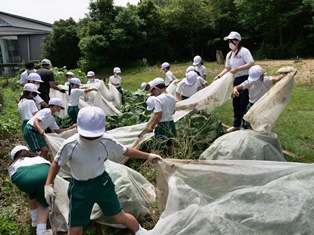 里山 458.キャベツの収穫(3年生) 2021年6月30日 2021年7月1日 6月30日(水)に3年生がキャベツの収穫をしました。 4月に植えたキャベツの苗は、3年生みんなで協力して世話をした成果もあり、たくさんの立派なキャベツになりました。 児童たちは「どうやって食べようか。」「大きすぎて重たい!」「こんなにすごいキャベツができてうれしい。」など様々な感想を言っていました。 不織布をみんなでとりました。 大きなキャベツができました。 いざ!収穫! 大切に食べたいと思います!