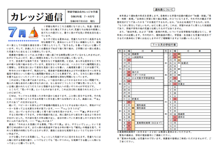 カレッジ通信 カレッジ通信 令和3年度7月号 2021年7月15日 2021年7月21日 カレッジ通信 令和3年度7月号が完成しましたので、掲載します。 (下の画像をクリックすると、PDFをご覧いただけます。)