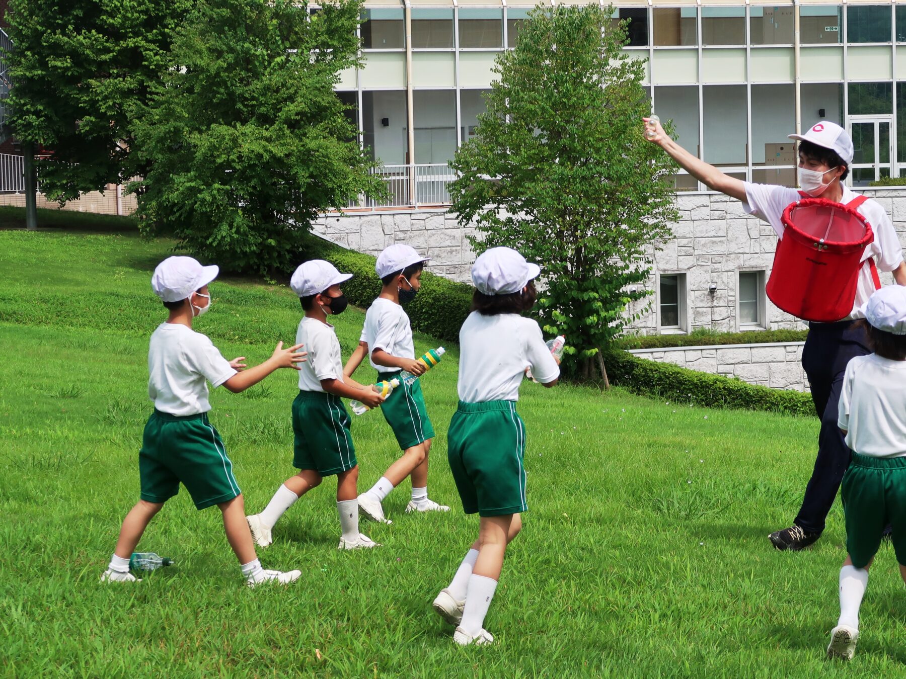 授業 463.水てっぽう大会(1・2年生) 2021年8月26日 8月26日(木)に、1・2年生合同で、生活科の授業の一環で、水てっぽう大会を行いました。 児童たちはペットボトルで水鉄砲を作って水の掛け合いをしたり、水風船を使ってリレーや玉入れをしたりと、楽しく活動しました。 ペットボトルに装飾をします 素敵な水てっぽうができました 水風船を割って遊びました 水風船を使ってリレー ...