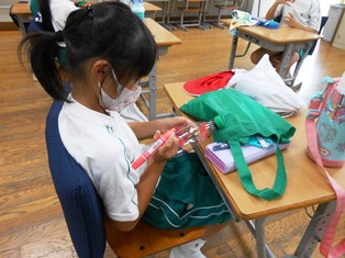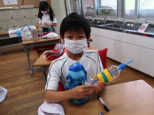 授業 463.水てっぽう大会(1・2年生) 2021年8月26日 2021年9月6日 8月26日(木)に、1・2年生合同で、生活科の授業の一環で、水てっぽう大会を行いました。 児童たちはペットボトルで水鉄砲を作って水の掛け合いをしたり、水風船を使ってリレーや玉入れをしたりと、楽しく活動しました。 ペットボトルに装飾をします 素敵な水てっぽうができました 水風船を割って遊びました 水風船を使ってリレー