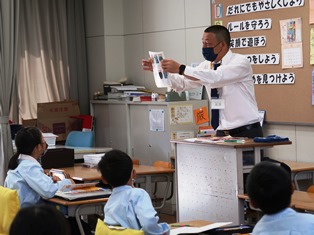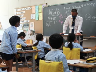 授業 469.ぶどう農家の方による出前授業~天野ぶどう園~(3年生) 2021年10月5日 2021年10月19日 10月5日(火)に3年生社会科「農家の仕事」の授業の一環として、「天野ぶどう園」の天野さんを特別講師としてお招きし、授業をしていただきました。 児童たちは、「なぜぶどう農家になったのか」「おいしいぶどうの見分け方」「仕事のやりがい」など、様々な質問をしました。 児童たちにとって、農家の仕事について考える、とても良い機会となりました。 はじめにあいさつをしました ぶどうについての質問をしました たくさんのぶどうの種類を教えてくれました 最後にお礼のあいさつをしました