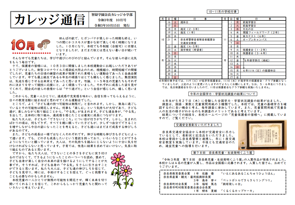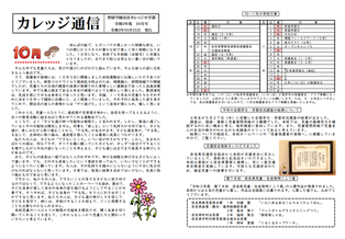 カレッジ通信 カレッジ通信 令和3年度10月号 2021年10月15日 2021年10月15日 カレッジ通信令和3年度10月号が完成しましたので、掲載します。 (下の画像をクリックするとPDFをご覧いただけます。)