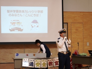 10月21日(木)に、奈良県警察本部および香芝警察署交通課の方々による交通安全教室と、奈良県警察音楽隊による音楽鑑賞会を実施しました。