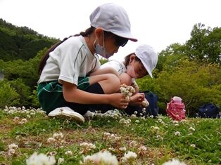 昼食後は原っぱ広場で活動しました。ボールを使って遊ぶ児童もいれば、植物を使って昔ながらの遊びをしていた児童もおり、友達と仲良く過ごしました。