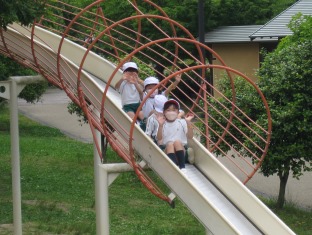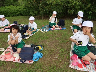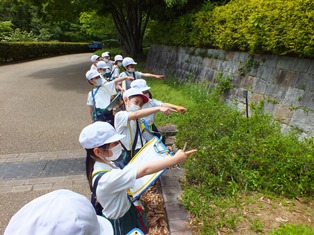 パンジーやシロツメクサなどの花が咲いている公園をハイキングし、見つけた植物を意欲的に記録していました。たくさんのバラが咲いているところでは、その種類の多さや美しさに驚き、喜んでいました。古墳に上って周りを見渡すと、とてもきれいに香芝市街が見えました。また、芝生の広場ではおいかけっこをしたり花の草かんむりを作ったりしました。大型のアスレチックや長いローラー滑り台でもみんな元気に遊び、充実した1日を過ごしました。