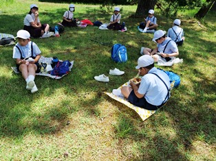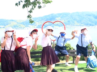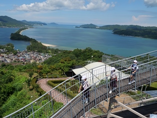 5年生は初めての、6年生は3年ぶりの宮津への臨海学校です。まずは日本三景の一つ、天橋立に行きました。山の上からみる天橋立の美しさに児童たちは見入っていました。友達と股のぞきをしたり、散策したりしながら景色を楽しみました。