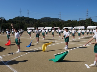 秋晴れの空の下、各色団長を中心に団結して優勝を目指します。