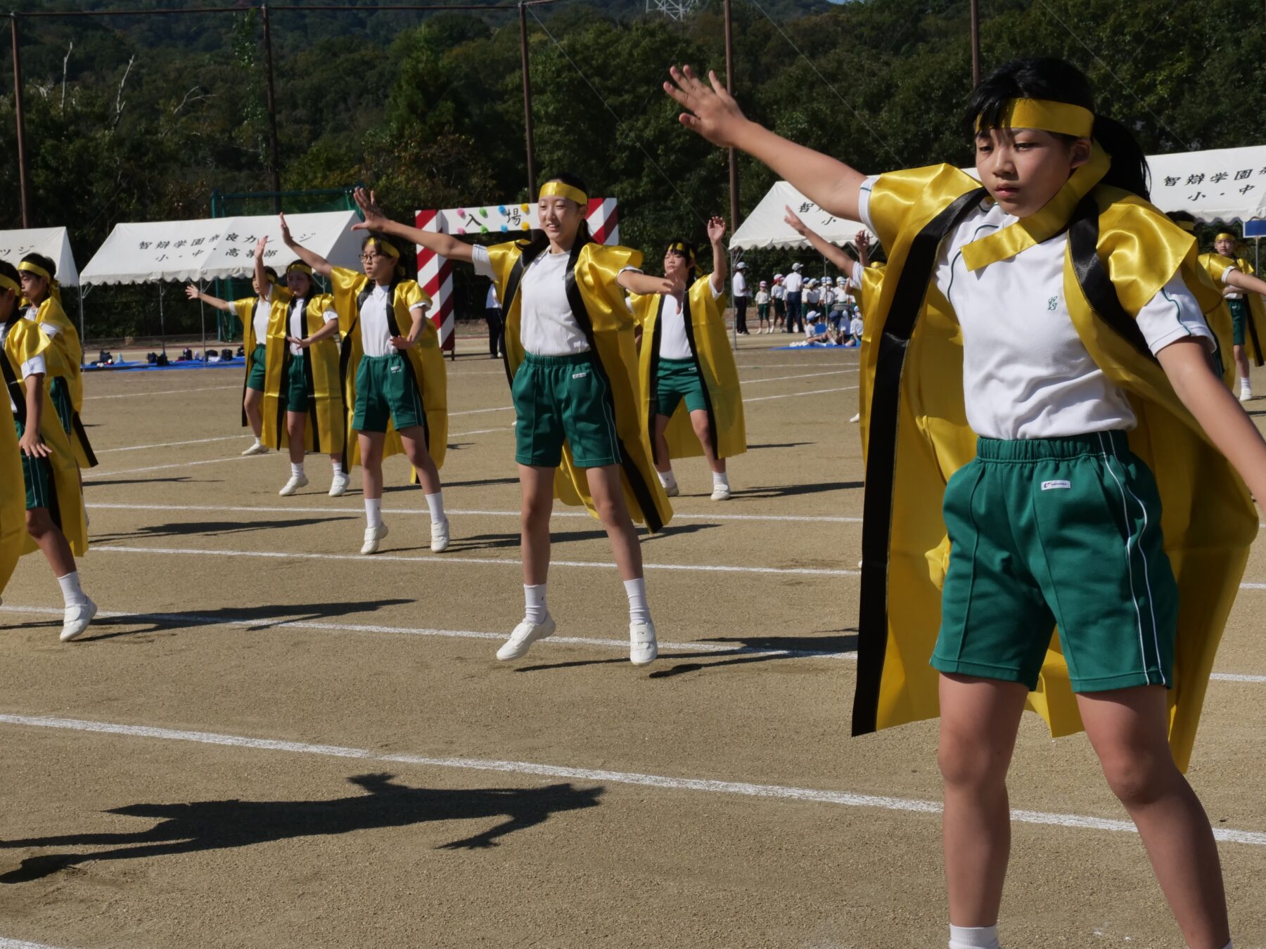 今年も感染予防の対策として、時間を短縮して行いましたが、3年ぶりに全学年の集団演技を実施することができました。どの学年もいきいきと、のびのびと踊り、練習の成果を発揮しました。今年の優勝は青組です。