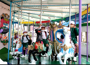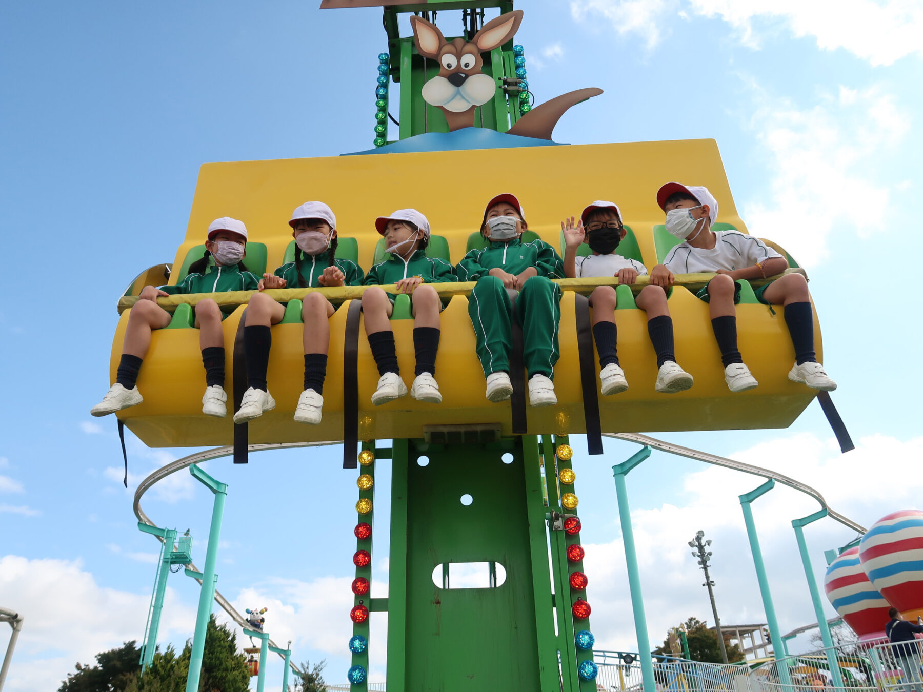 友達と一緒に遊園地で遊ぶことがとてもうれしかったようで、帰ってからも「もっと遊びたい!」「また行きたい!」という声がたくさん聞こえました。秋の一日を、班の友達と仲良く楽しく、元気に活動することができました。
