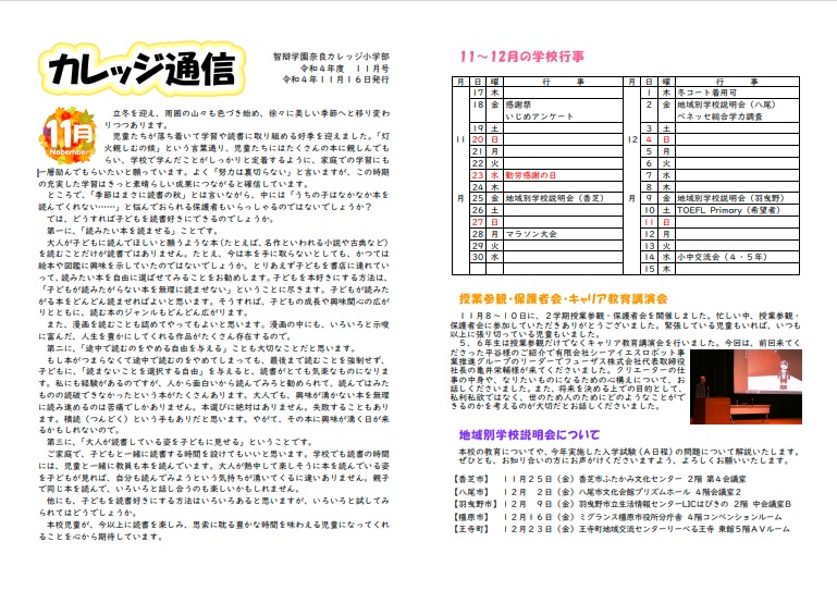 カレッジ通信11月号を掲載します。(下の画像をクリックするとPDFをご覧いただけます。)