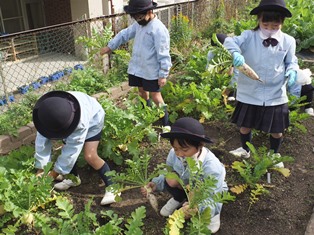 里山 629.College Time「田起こし」(4年生) 4年生が、田んぼの田起こしを行いました。 慣れない手つきで、鍬やスコップで土を掘り起こします。 「ミミズがいた!」「雑草の根っこ、すごい!」...