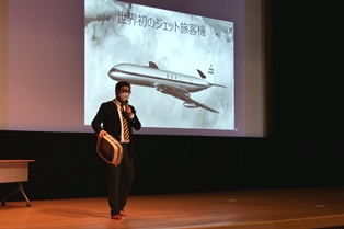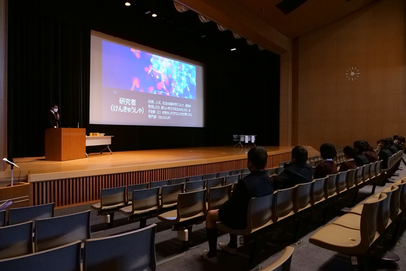 工藤様は「研究者とは何か。どのような仕事をしているのか。」の内容についてご講演くださり、特にご専門の「航空法」について、ルールが存在する理由や由来について具体的にお話しくださいました。その中で、現在の日本の法律や国連のルールは、過去の航空事故に関する徹底された調査結果を基につくられており、失敗から学ぶことが大切であること、また、研究者は、自分の「知りたい」という気持ちが世のため人のために役立つ仕事であるということをご教示くださいました。