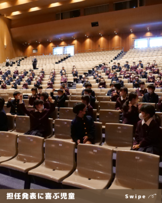始業式で校長先生からご訓示と担任発表があり、児童たちは担任の先生を教えてもらって喜んでいました。