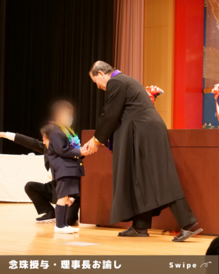 入学式では理事長先生から本校児童の証である念珠を授与され、式中は姿勢を正し、立派な姿を見せてくれました。
