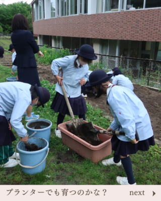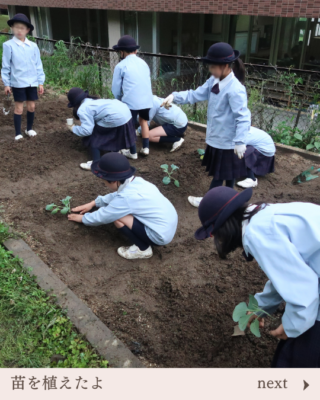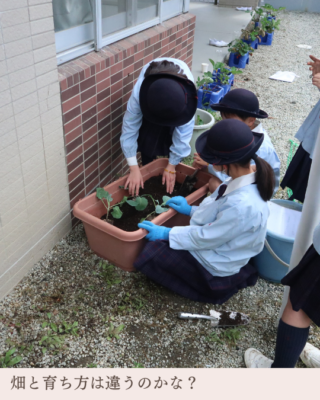 大きく育てたいグループ、おいしく育てたいグループなど、同じ目的を持った児童同士でグループをつくり、目的に合った植え方を調べて植えました。