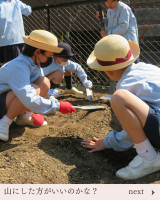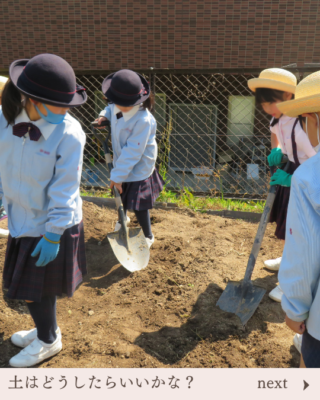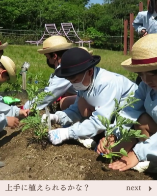 土はどうすればいいのか、苗はどのように植えたらいいのか、みんなで意見を出し合いながら計画し、計画書を確認しながら植えました。