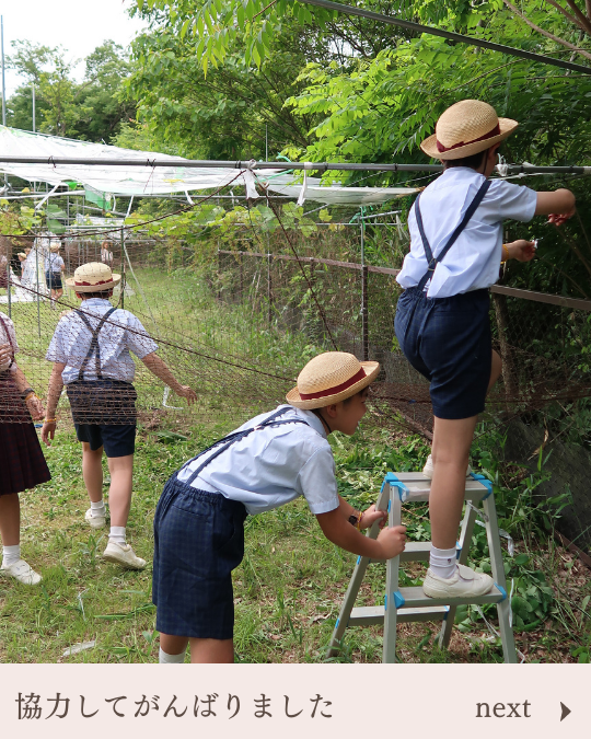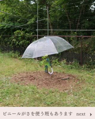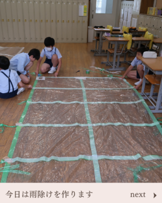 雨に弱いぶどうを守ろうと班ごとに雨除けを作りました。