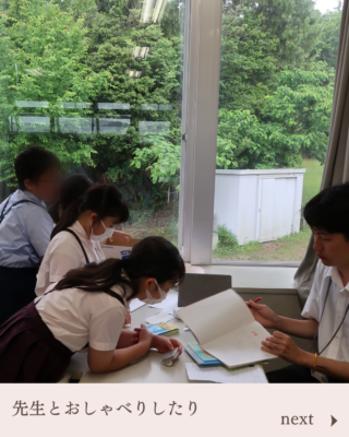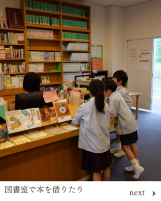 図書室で本を借りたり読んだり、教室で友達と遊んだり、先生と話したりしています。