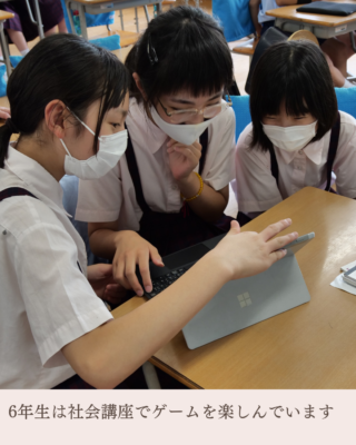 6年生は社会の講座で「桃太郎電鉄 教育版」のゲームをグループで楽しみました。