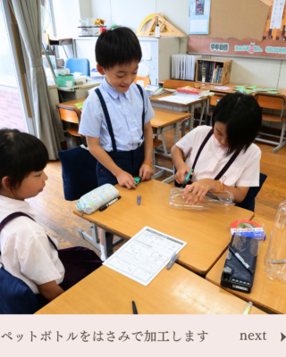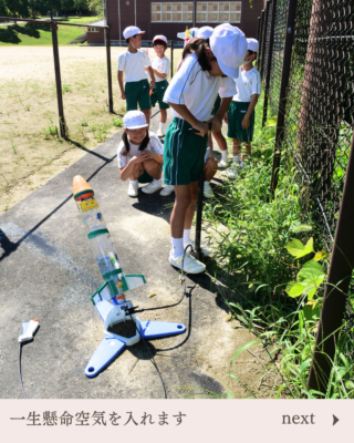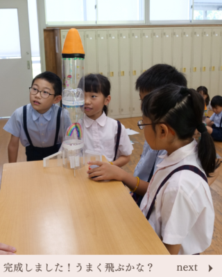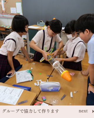 ペットボトルをはさみで切って加工するのは、とても固くてたいへんでしたが、グループの仲間と協力しながらがんばって作り、発射しました。