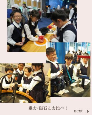 行事 587.秋の遠足(3・4年生)大阪市立科学館 2023年10月18日 2023年11月18日 3年生と4年生が合同で、大阪市立科学館に遠足に行きました。 いろいろな実験を体験することで、楽しみながら科学について学ぶことができました。 重力や磁石、光や電気など、さまざまな「科学」の体験に、子どもたちは夢中になっていました。