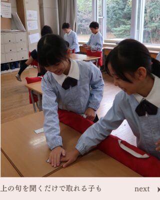 授業 598.国語「百人一首」(4年生) 2023年11月30日 2023年12月2日 4年生の教科書に「百人一首」の歌が紹介されています。 気に入った歌を暗唱したり、かるたで遊んだりして短歌に親しんでいます。 最近は上の句を聞くだけで下の句をとれる児童が増えてきました。 楽しみながらどんどん覚えています。
