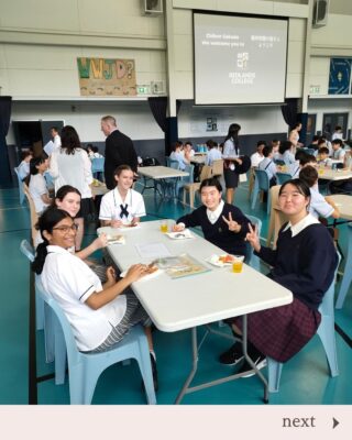 2日目 姉妹校のレッドランズカレッジを訪問しました。児童たちは英語、レッドランズカレッジの生徒たちは日本語を使ってコミュニケーションをとりました。