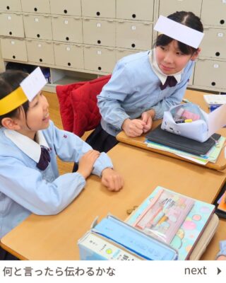 授業 626.言葉のじゅんび運動(5年生) 2024年4月23日 2024年4月28日 国語の時間に「ひみつの言葉を引き出そう」というゲームをしました。「うれしい」などの「気持ちや様子を表す言葉」を書いたカードをそれぞれがおでこに貼り、周囲と会話をしながら、自分のおでこに貼ってある言葉を引き出すゲームです。 自分のおでこの言葉が言い当てられたらはずして確かめます。 グループの友達と自由に話しながら、たくさんの言葉を使って会話を楽しんでいました。