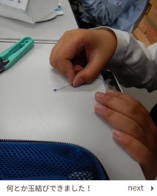 授業 632.家庭科「はじめての裁縫実習」(5年生) 2024年5月7日 2024年5月18日 5年生が、初めての裁縫実習を行いました。 児童たちが一番苦労していたのは、玉結びと玉止め。 「小さい玉になっちゃった~!」と言いながらも、何度もチャレンジしていました。 慣れてしまえば、裁縫がもっと楽しくなりますよ!