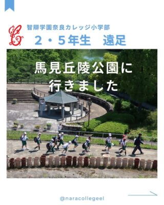 行事 637.春の遠足 馬見丘陵公園(2・5年生) 2024年5月15日 2024年5月28日 2年生と5年生が一緒に馬見丘陵公園に遠足に行きました。 まずは縦割り班ごとにハイキング。緑がいっぱいの広い公園内を話しながら歩いていきます。5年生は、「休もうか?」「お茶を飲もう」と声をかけたり、時には荷物を持ってあげたりして2年生を気にかける姿がたくさん見られました。芝生や遊具では思いっきり遊び、みんな笑顔いっぱいの一日を過ごしました。