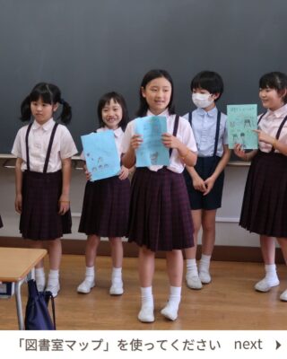 授業 651.図書室マップをつくろう(3年生) 2024年6月10日 2024年6月18日 3年生が、国語の時間に図書室の分類の仕方について調べ、「図書室マップ」を作りました。 図書室にはたくさんの本があります。 どこにどんな本があるかわかるようにと1年生にプレゼントしに行きました。 1年生はとても喜んでさっそく「図書室マップ」を使って本を探しに行きました。