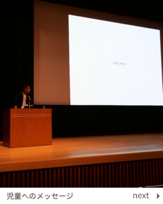 この講演会は、児童が将来について考える際の糧となることを目的に、毎年経営者や技術者などの方にお越しいただき、お仕事に関することをご講演いただいています。