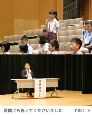 今回は、平谷様の経歴や、関わっておられるビジネスについてご紹介いただき、最後に児童にアドバイスも頂戴しました。