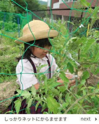 里山 684.College Time「夏野菜を育てよう」(2年生) 2024年7月29日 2024年8月10日 2年生が1学期Cタイムで夏野菜を育てました。畑のトマトやきゅうりのつるが伸びてきたので、学校にある材料でネットを作りました。インターネットで調べて、どの材料を使うのがいいか自分たちで考えました。 収穫もできて、とった野菜をうれしそうに見せてくれました。毎日暑い中、お世話をがんばりましたね。
